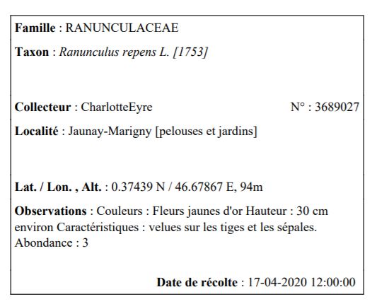 Ci joint l'une des plantes de l'herbier des herbonautes. Très pédagogique pour apprendre à lire toutes ces étiquettes.
