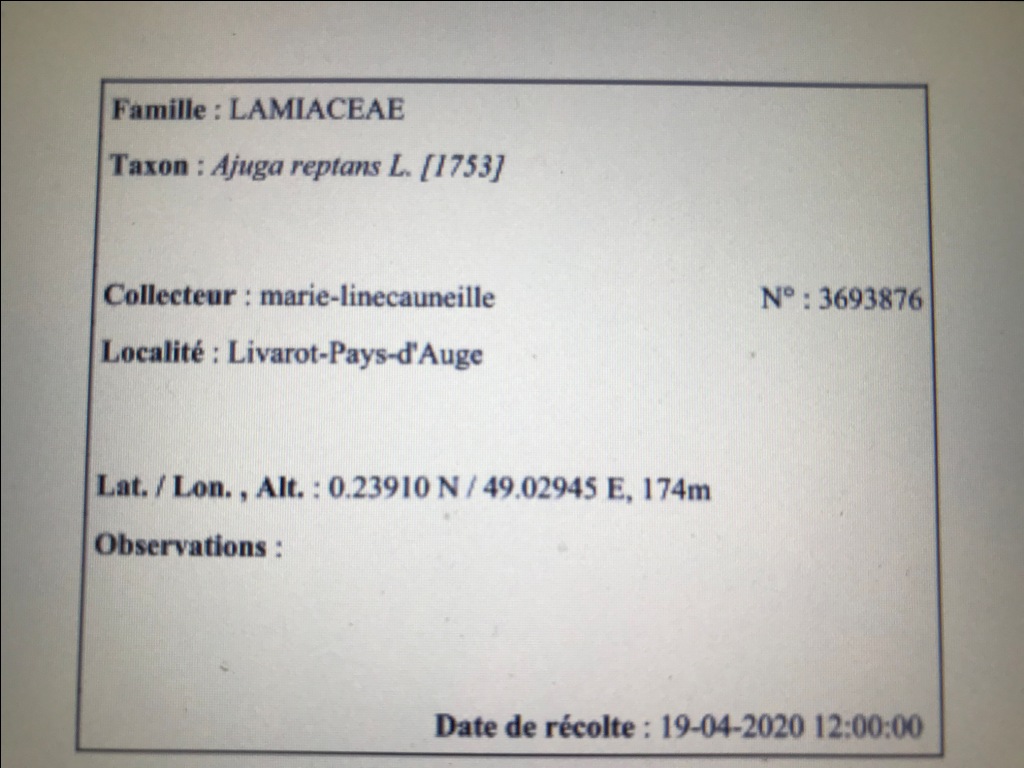 J'ai "joué" aux Herbonautes. C'est très intéressant et presque addictif. Certaines étiquettes remplies par des botanistes peu scrupuleux ou très anciens sont difficiles à déchiffrer. Mais celle-ci est exemplaire :
