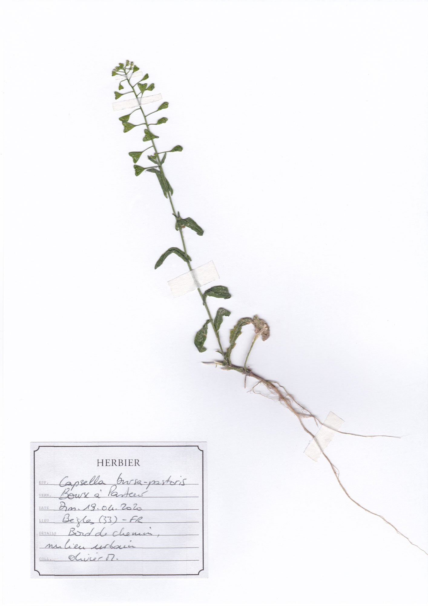 Avec un jeune pied de Capsella bursa-pastoris collecté dans mon jardin