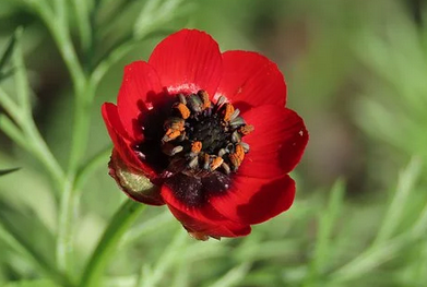 L'Adonis d'été, Adonis aestivals, est lui en EN danger. C'est une fleur des champs qui était commune au XIXe siècle mais je n'en ai jamais vu, et c'est bien dommage parce qu'elle est vraiment magnifique ! Elle est en danger d'extinction suite à l'intensification agricole..