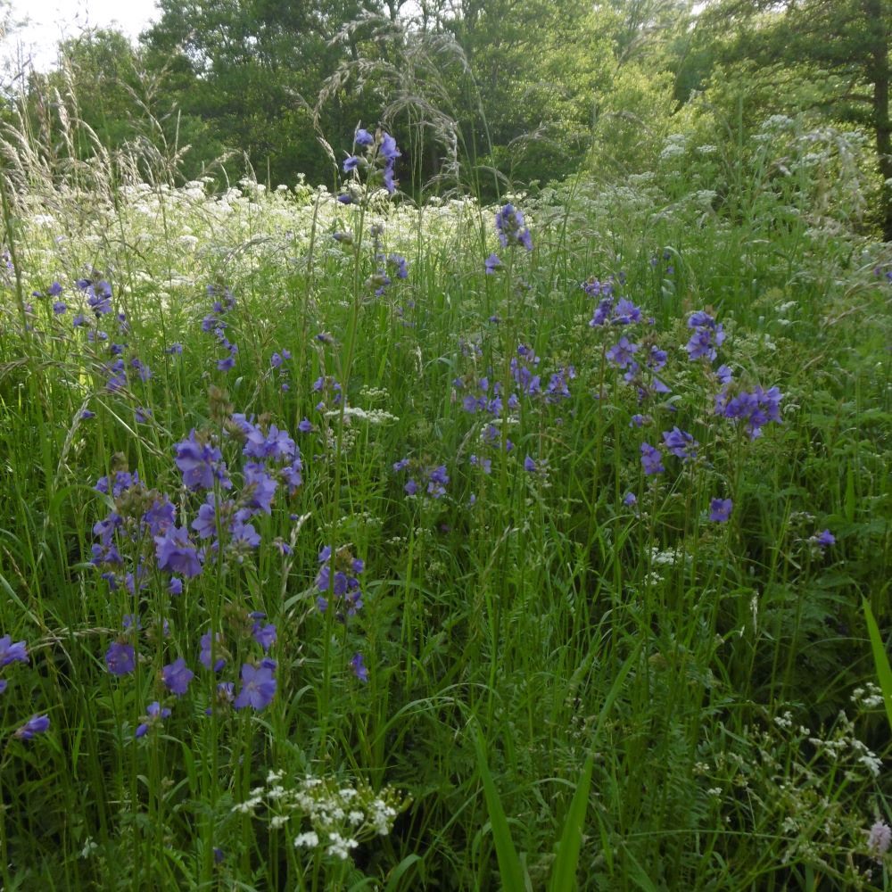 Orlaya grandiflora, Myosotis balbisiana, Narcissus jacetanus, Rosa spinosissima, Iris graminea.