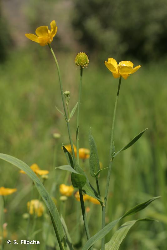 Caractéristiques : Plante annuelle à tige de 20 à 40 cm, simple ou rameuse, souvent pubescente inférieurement à feuilles divisées en lanières. Fleurs rouges vifs rarement jaunes, à 5 sépales appliqués contre les pétales, velus , 3 à 6 pétales, étroits, oblongs, plans, étalés, souvent très inégaux , anthères d'un violet noir. Épi fructifère assez lâche, allongé cylindrique à akènes glabres, munis d'une bosse arrondie collée sous le bec.