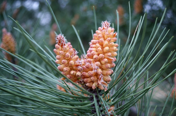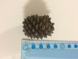 - cônes très gros, ovoïdes-obtus ou subglobuleux, longs de 8-15 cm sur 8-10 de large, d'un brun-rougeâtre luisant, subsessiles, réfléchis ou étalés horizontalement