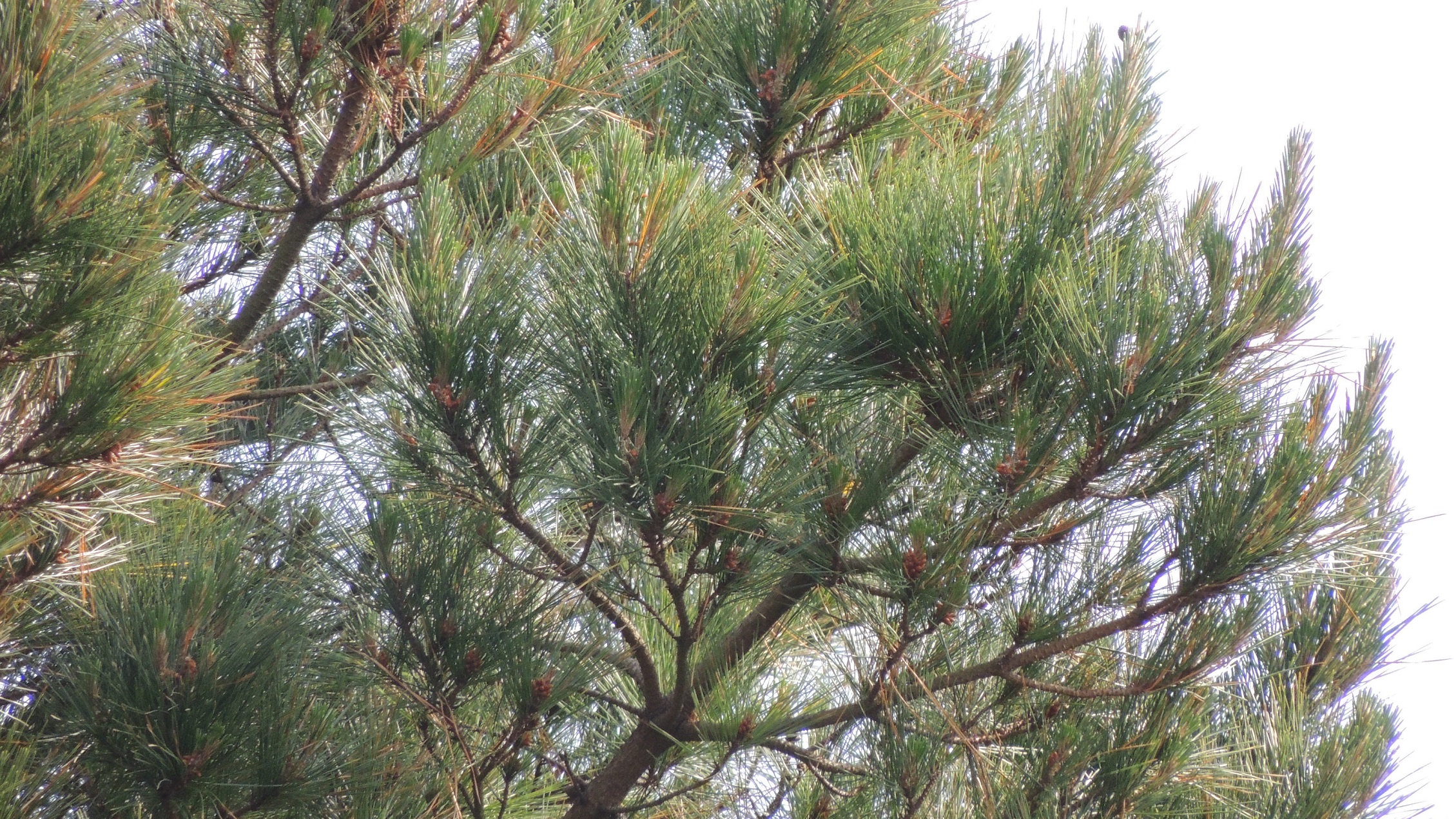 J'ai pris cette photo en me promenant au bord de la mer sur l'île de Noirmoutier. L’écorce est noire, le tronc est dressé, mais pousse de biais, ce qui en fait un marqueur dans le paysage. Les aiguilles sont longues et réunies par deux.