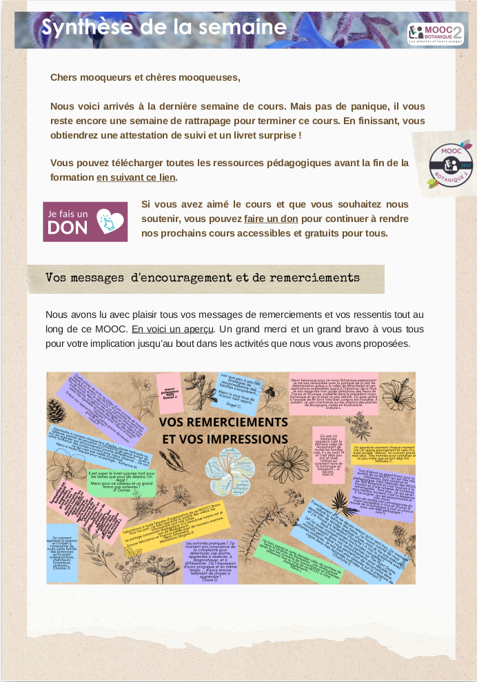 Le MOOC Botanique Les plantes et leurs usages n’a plus de nouvelle séquence de cours à dévoiler, mais il nous reste encore une semaine à passer ensemble !